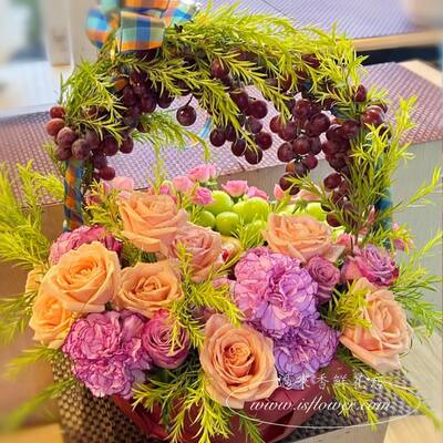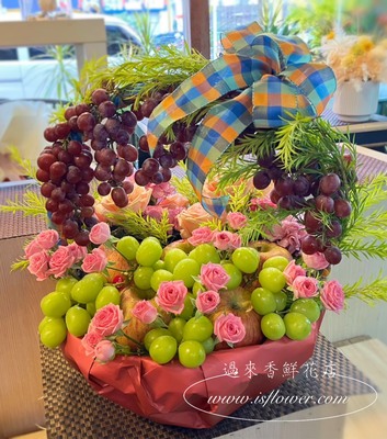 豐盛圓滿水果花禮,水果季節限定, 適合開幕、榮陞、展示會、新居落成、週年慶、宮慶、生產、早日康復、生日。